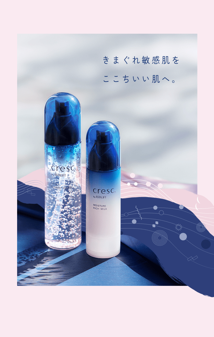 日常には気まぐれ敏感肌の原因が多く潜んでいます。少しでも肌の乾燥やゆらぎを感じたら、クレスクでしっかりと独自のセラミド*ケアしてここちいい肌を目指しましょう!